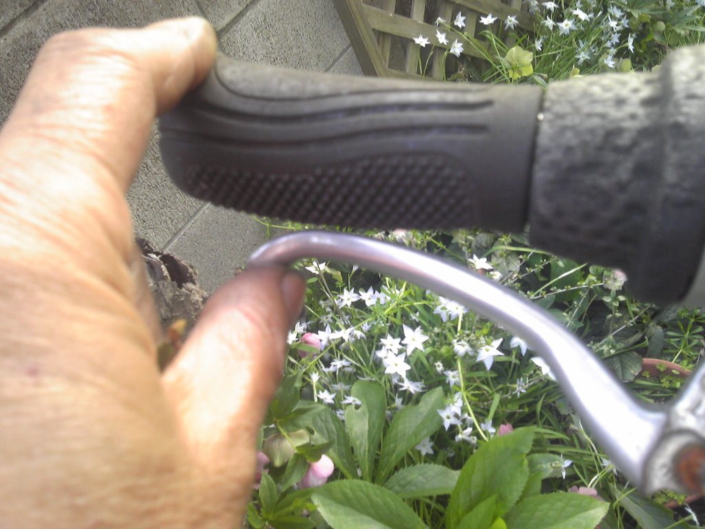シティ車の後輪のブレーキは、あまり調整の必要がありません。使われているブレーキレバーもちょっと形が違います。