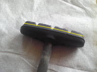 赤丸のネジの下部が見えなくなったら、ブレーキのゴム(ブレーキシュー)は交換時期になっています。