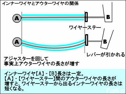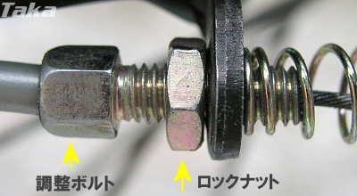ブレーキレバー側で調整します。